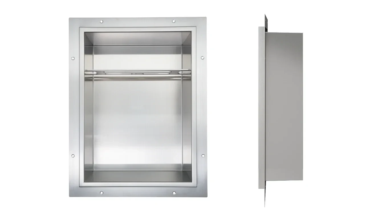 The Redblock stainless steel shower niche is a completely welded unibody box frame consisting of only 4 corner welds and four small shelf welds. That means that this niche is not only waterproof, but also completely vapor proof. Absolutely no water vapor can move through this material and condense into water in the shower wall; a VERY common problem with most other types of prefab tile-ready niches. Finally a bathroom niche that allows you to reduce the shower clutter, store all your shampoo, conditioner, body wash, and toiletries, but NEVER again worry water damage from your shower niche.