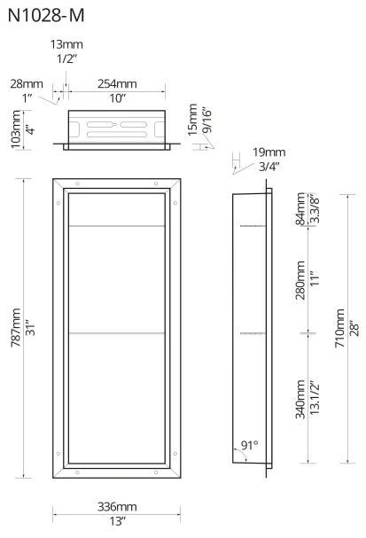 The integrated tile edge trim that surrounds the niche allows you to install shower wall tiles up to 1/2″ thick, providing a professional finish and cohesive look to your shower design.